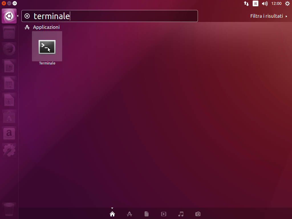 dello schermo) e scrivere 'terminale' (in alternativa si può usare la combinazione di tasti CTRL + ALT + T - che dovrebbe funzionare su