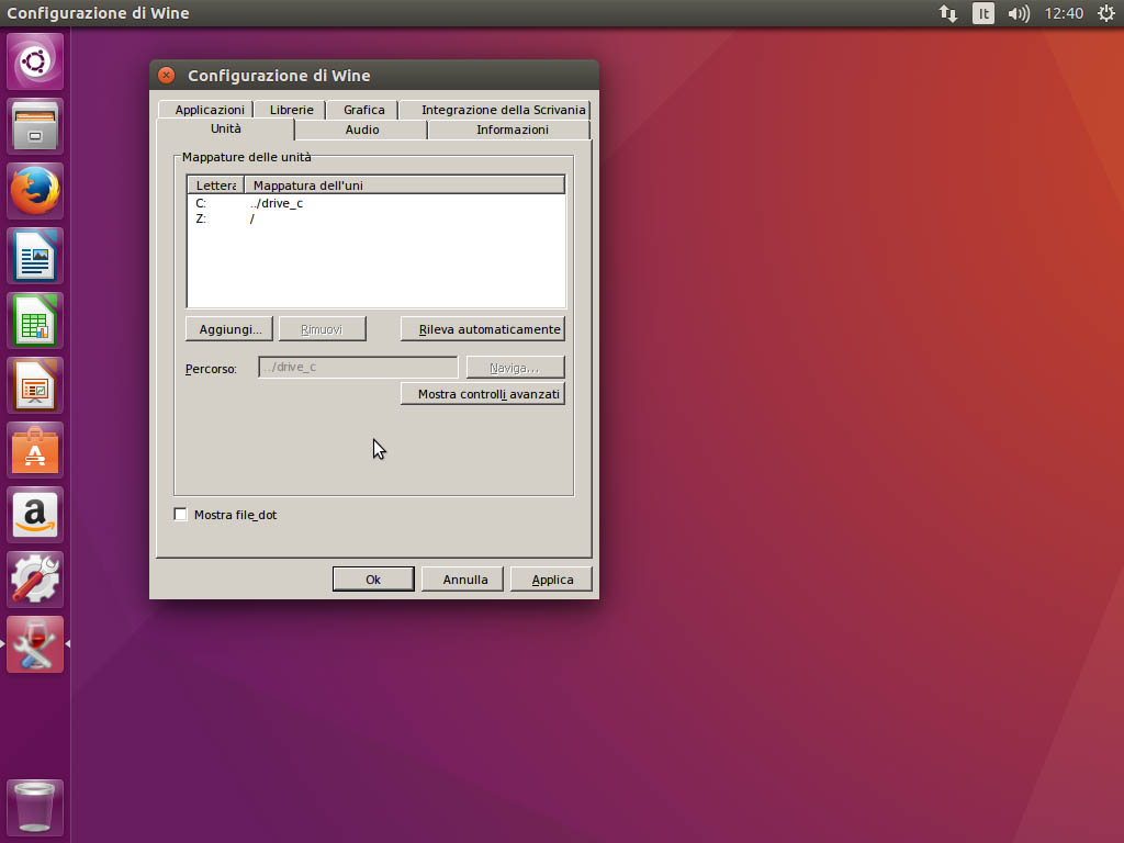 come potete vedere dalla videata seguente. Ma presto forniremo una guida sulla configurazione di Wine