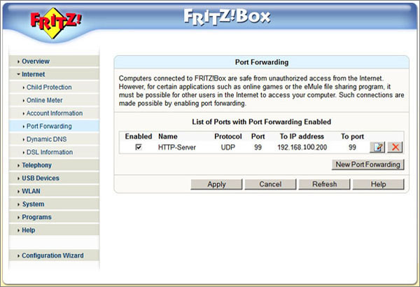 Con questa definizione sulla porta 99 per l'indirizzo IP interno 192.168.100.200 (quello della IPCamera, nell'esempio)